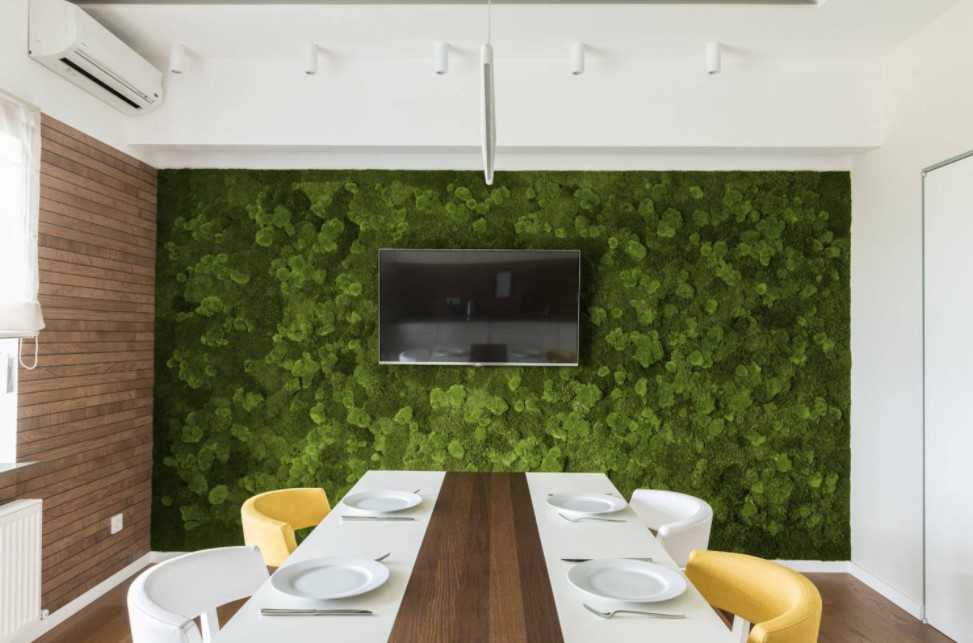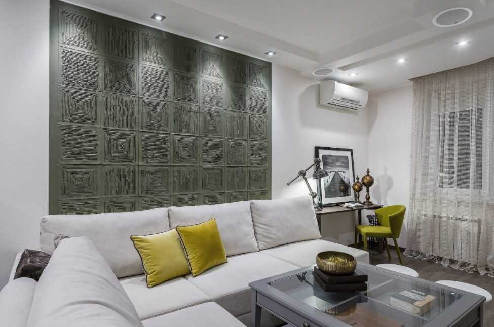 - Применение освежающих тонов натуральной зелени. Актуальными остаются как нежные светло-зеленые, мятные и малахитовые сорта, так и темно-бирюзовые и оливковые тона. При чистом звучании зеленые ноты в ярких вариациях отлично подходят для выделения акцентов. Мята, благородные фисташки, твердый тростник могут соло в космосе. Светло-зелень подходит людям, стремящимся к обновлению. Консерваторы отдают предпочтение серьезной, сбалансированной темно-зеленой цветовой гамме.