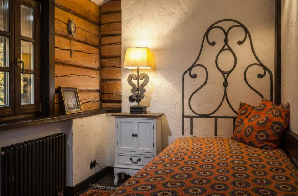 Стиль кантри, хотя его условно можно отнести к «домашним», несколько выделяется. Основные текстуры — дерево, кирпичная кладка, ковка. Иная цветовая гамма — коричнево-бежевая, оттенки приглушенного красного. В спальню в стиле кантри впишется кровать с кованым изголовьем.
