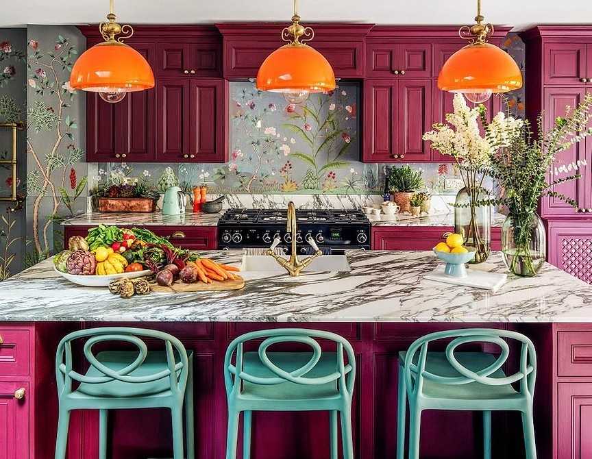 Тенденция на фактуры прослеживается в интерьерах всех комнат: от спальни до ванной, столовая и кухня — не исключение. Актуальны абсолютно разные фактуры, в том числе бетонная, под мрамор и любой другой камень, а ещё абстракции.