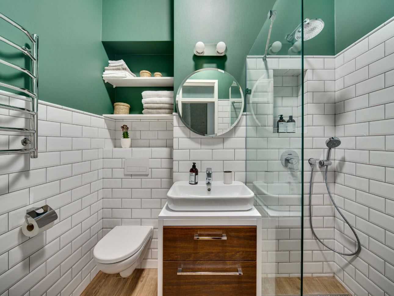 Выбирая подходящую модель для ванной, стоит заранее убедиться, вписывается ли изделие в интерьер. Стекло может перекликаться с дверцами душевой кабинки, металл – с хромированными элементами сантехники, дерево – с тумбочкой под раковину.