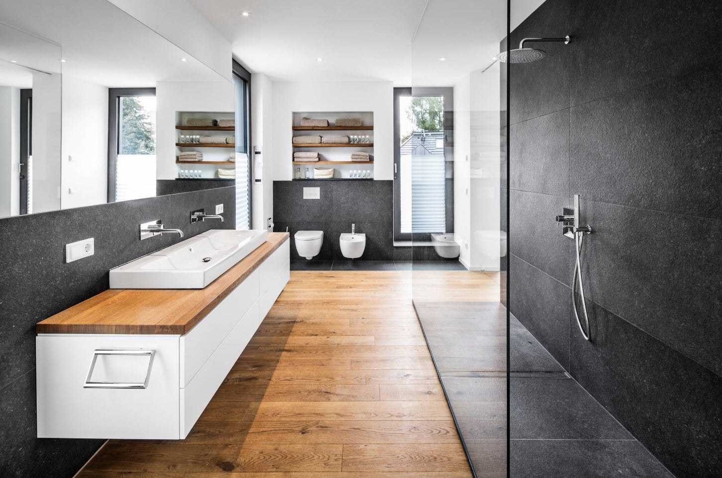 Также вариантом станет древесина, вскрытая бесцветным лаком. При наличии темной плитки под цвет дерева выбор оптимального оттенка расширяется. Лучшими породами древесины для мебели в ванную являются береза, дуб, ясень, неординарность интерьеру придают орех и вишня.