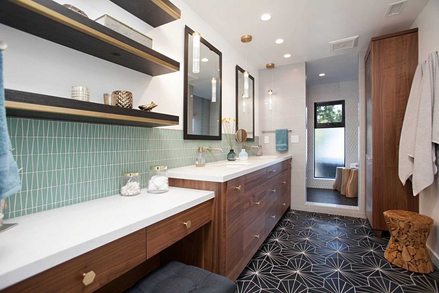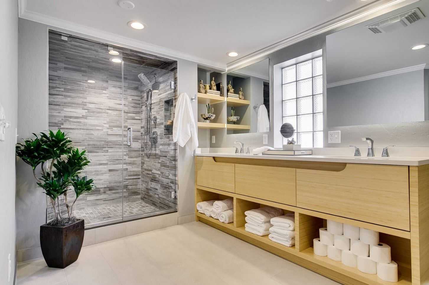 Сегодня можно увидеть дизайн ванной комнаты, которая имеет полки, встроенные в стену в виде ниши. Одни считают их отсутствием прагматизма, другие — совершенно наоборот — очень практичным и функциональным решением. Открытые полки в ванной комнате из плитки — это не только полезно, но и красиво. Конечно, требуются усилия, чтобы держать их в чистоте, так как на открытых поверхностях пыль накапливается постоянно. А в маленьких интерьерах беспорядок на полке может создать впечатление захламленности. Однако благодаря открытым полкам вы всегда сможем иметь под рукой нужные предметы, которые используете каждый день, например, любимый крем или расческа. Более того, такая мебель позволяет хранить различные декорации и побрякушки, что добавит в ванную больше личного характера, чем гладкие, закрытые фасады. По этой причине для многих людей открытые полки в ванной отображают внутренний стиль, придавая комнате индивидуальную атмосферу.