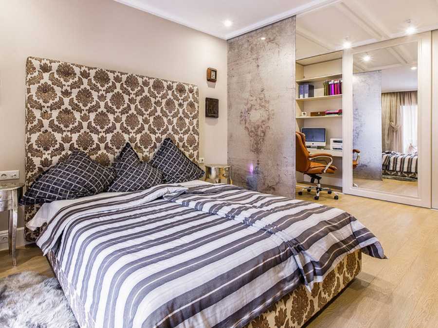 Деревянная перегородка раздвижного типа между спальной комнатой и гостиной