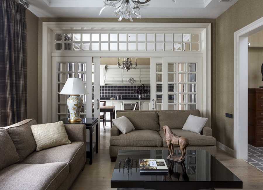 Большую гостиную, если она является проходной, могут украсить арки, поддерживаемые колоннами.