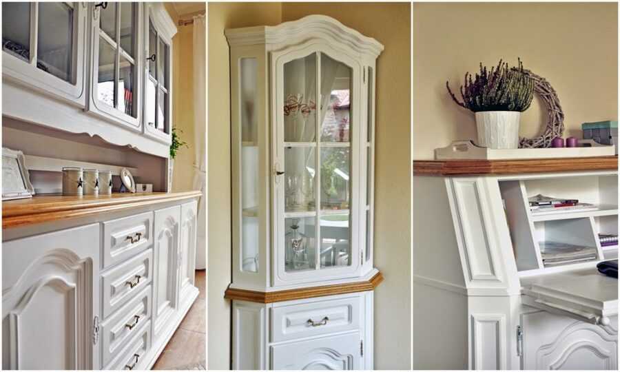 Существует множество вариантов реставрации своими руками предметов интерьера. Вторая жизнь старой мебели может быть дана покраской, оклейкой, кракелюром, декупажем. Но в любом случае работы по обновлению шкафа будут включать в себя два важных этапа: ремонт и подготовку к последующей отделке.