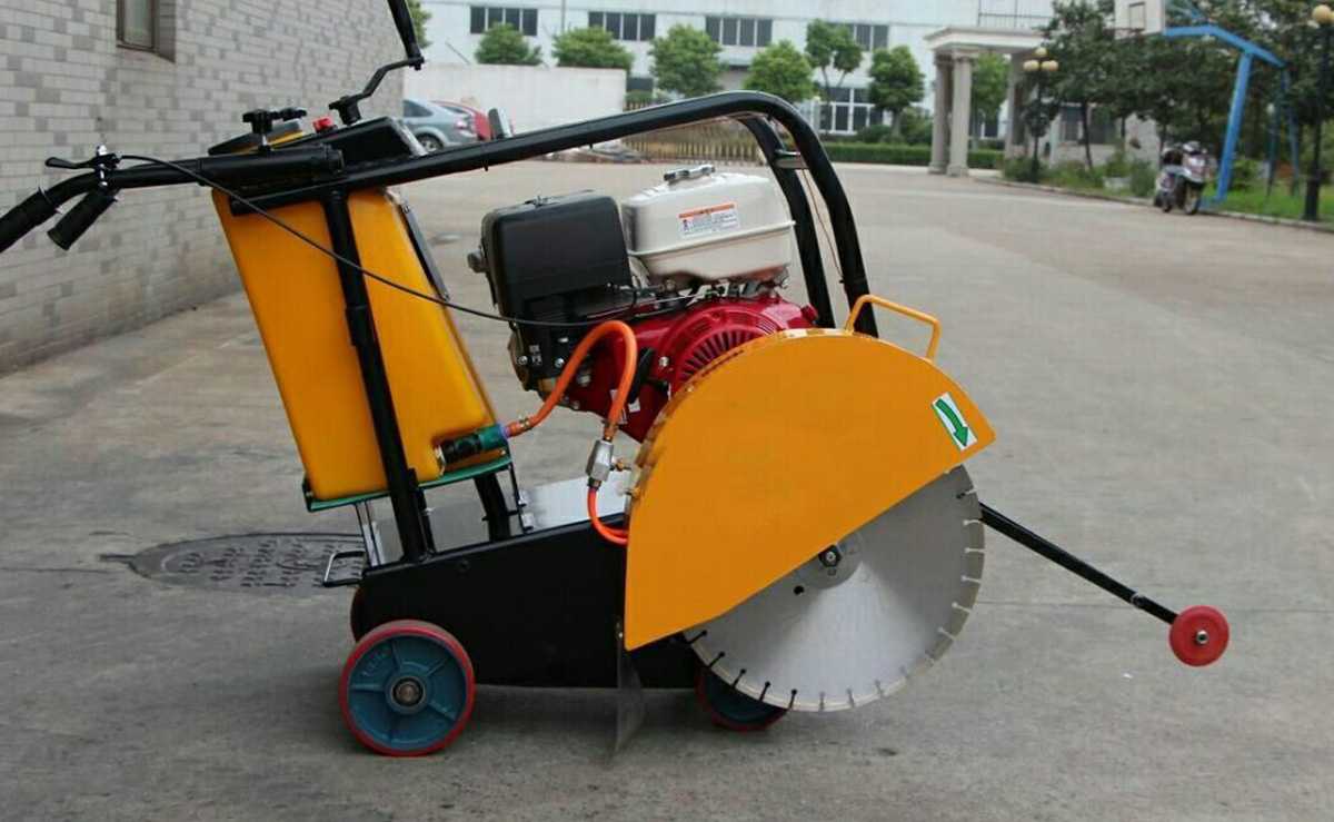 Машина выглядит как стальная рама на колесиках и с мотором. К двигателю подключен большой диск с алмазным напылением. Устройство прокатывают по поверхности, диск врезается в материал, проделывает канавку. Если нужно, режущую часть заглубляют.