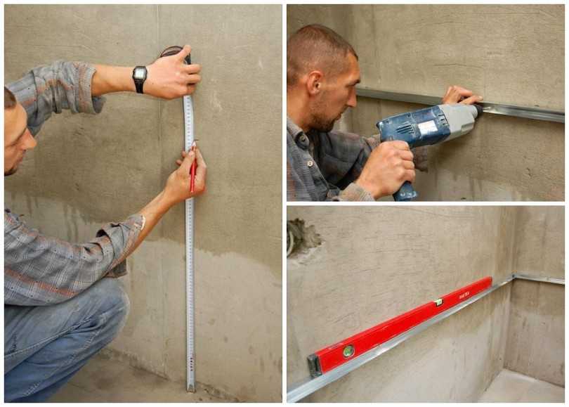 Необходимо измерить перепады на стене. Для этого используется отвес от потолка до пола. Записываются все размеры.