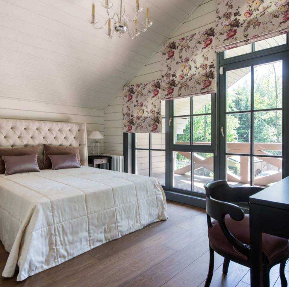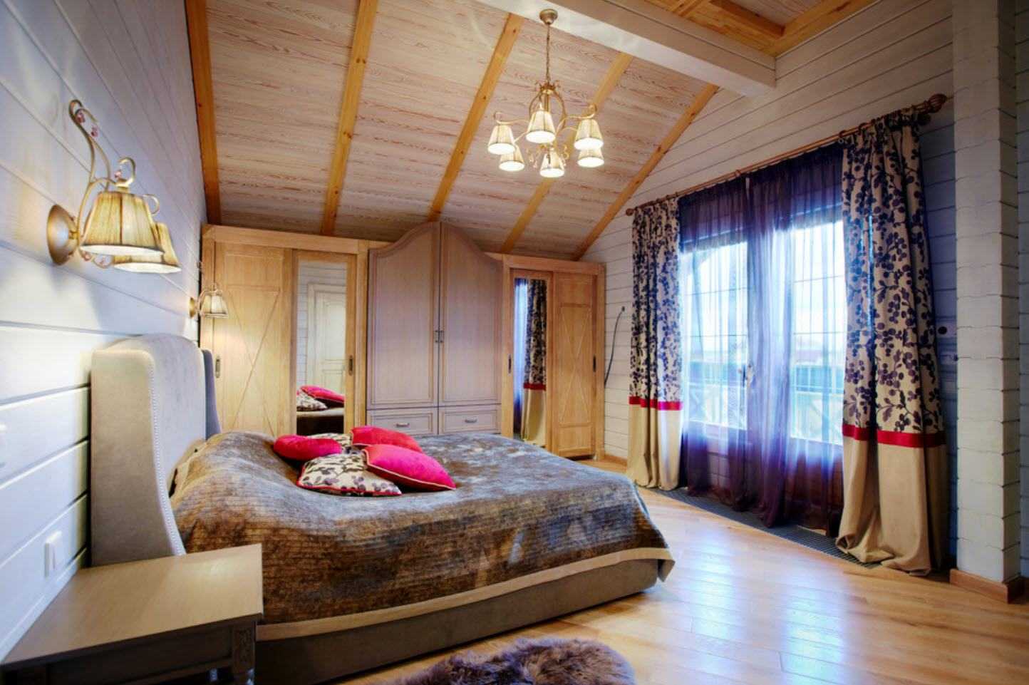 Имитация бруса из лиственницы в отделке спальниИсточник archmasters.ru