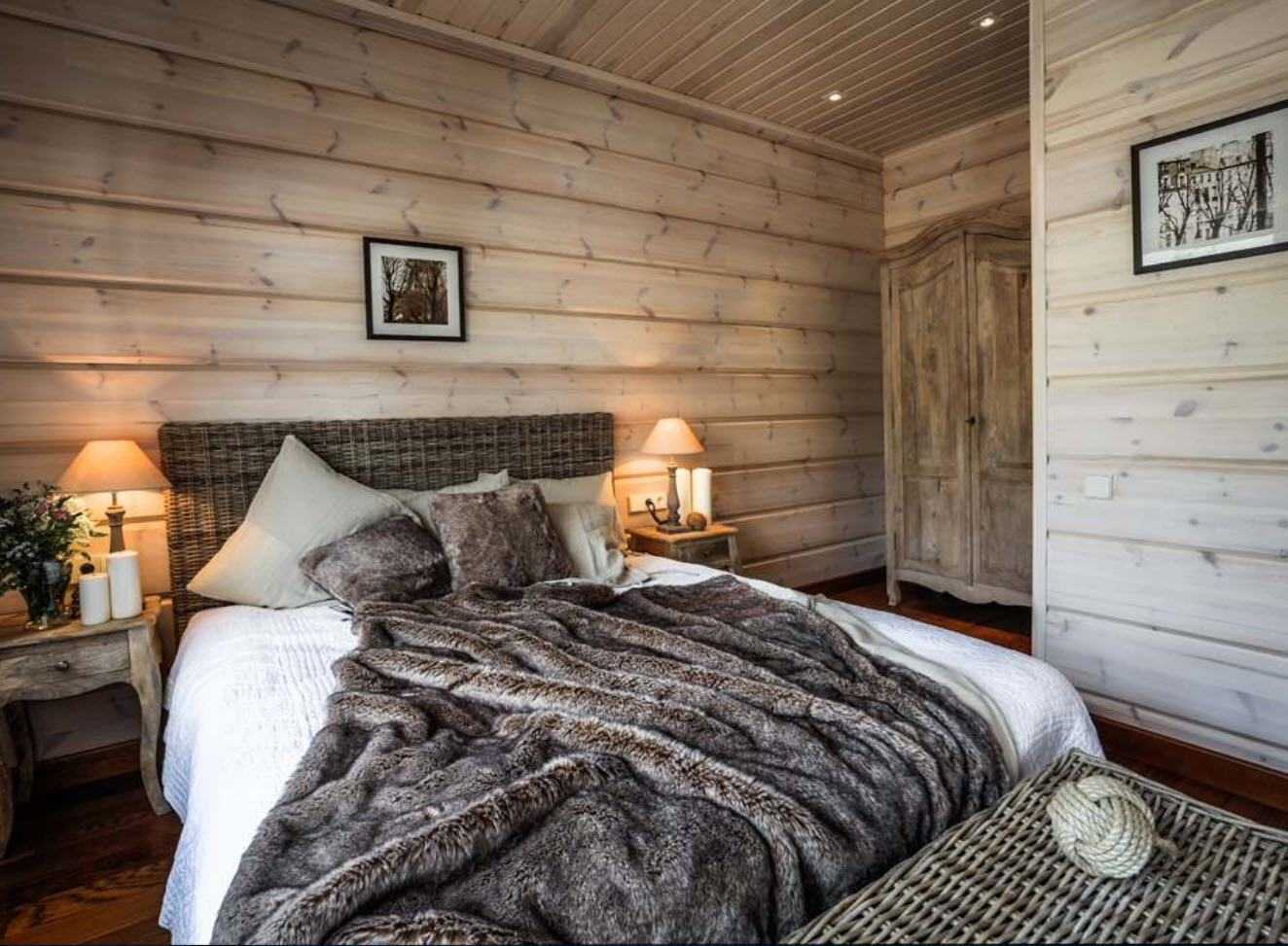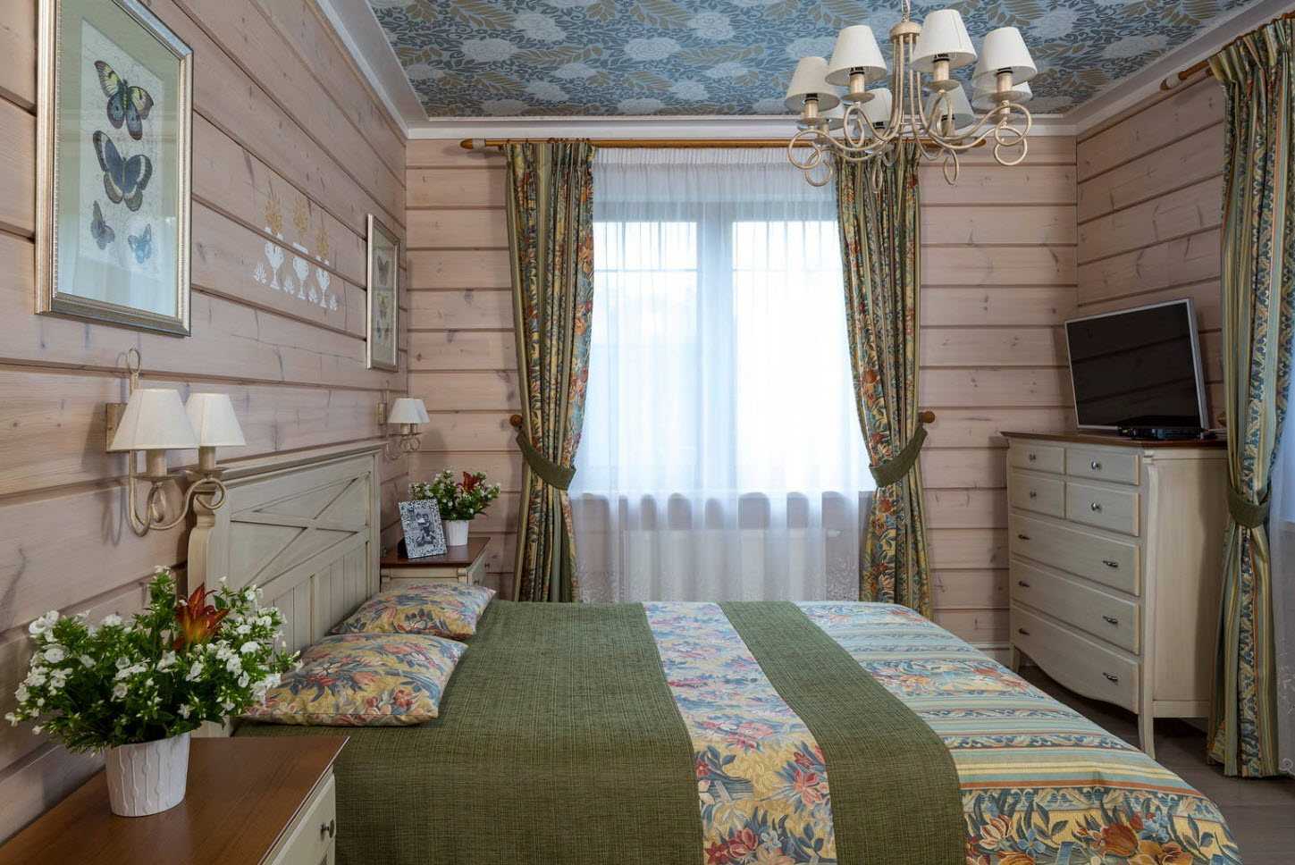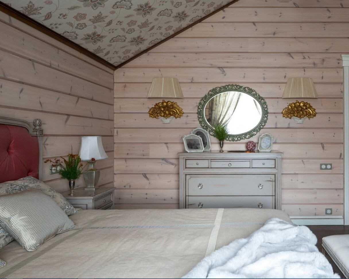 Имитация бруса из сосны в интерьере спальниИсточник pilomaterial-stroi.ru
