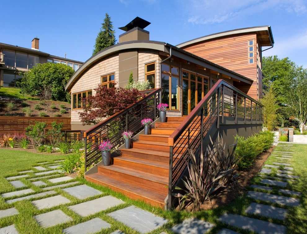 Многие люди сегодня выбирают современные проекты домов, которые имеют необычный вид, кардинально отличаясь от классических построек. Имитация бруса может заполнять всю наружную поверхность дома или же шикарно сочетаться с другими строительными материалами, например, бетонными плитами, металлической арматурой, огромными стеклами.