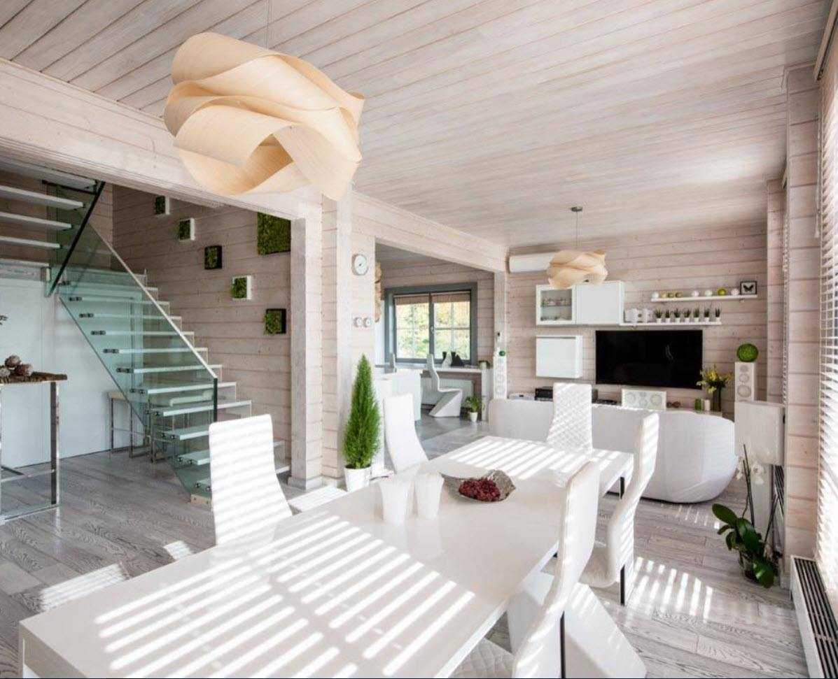 Какой ещё отделочный материал может соперничать с деревом в этом? Трудно ответить на этот вопрос. Современная отделка делает жилое помещение сдержанным. Она подчеркивает строгость, и это помогают делать четкие линии и углы. Скругленная часть бруса смягчает выдержанную строгость.