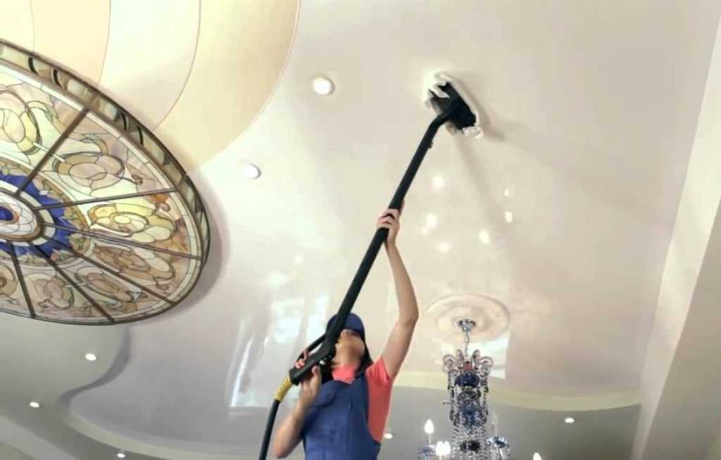 На поверхности матовых потолков загрязнения очищают, соблюдая общие правила безопасности, но при этом допустимо использование бытовой техники: пылесоса, парогенератора.
