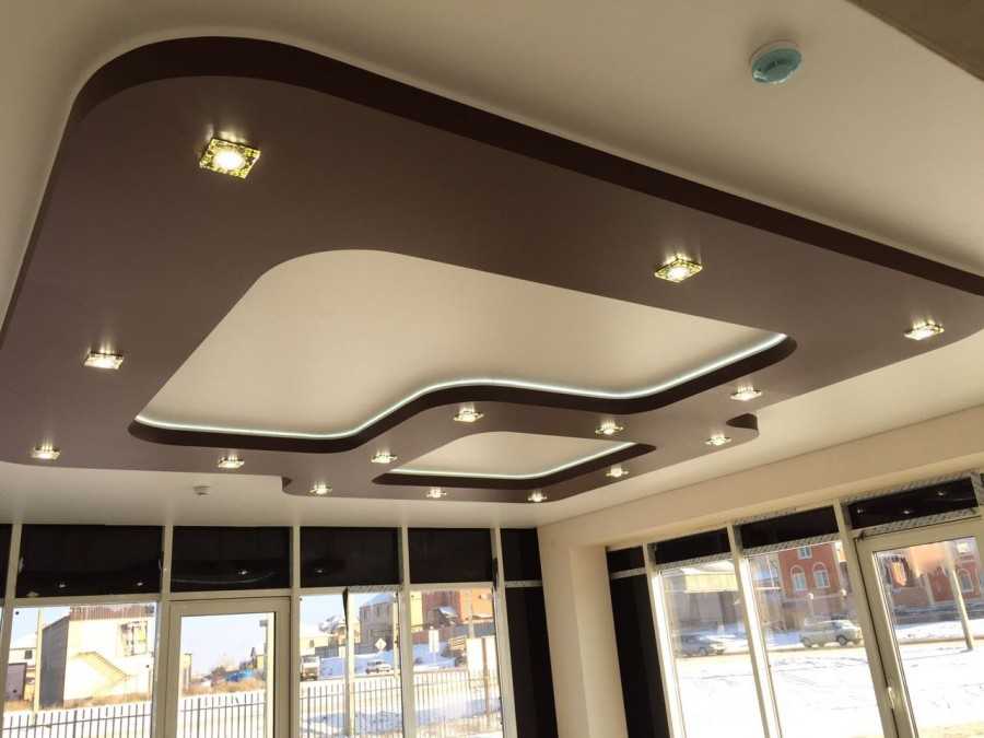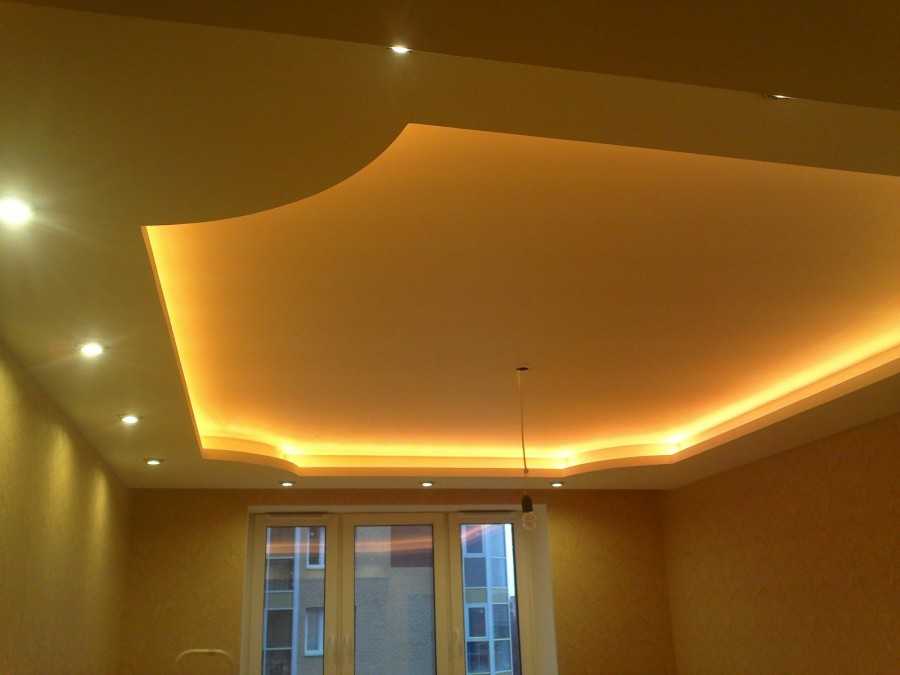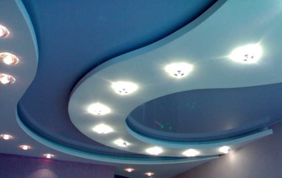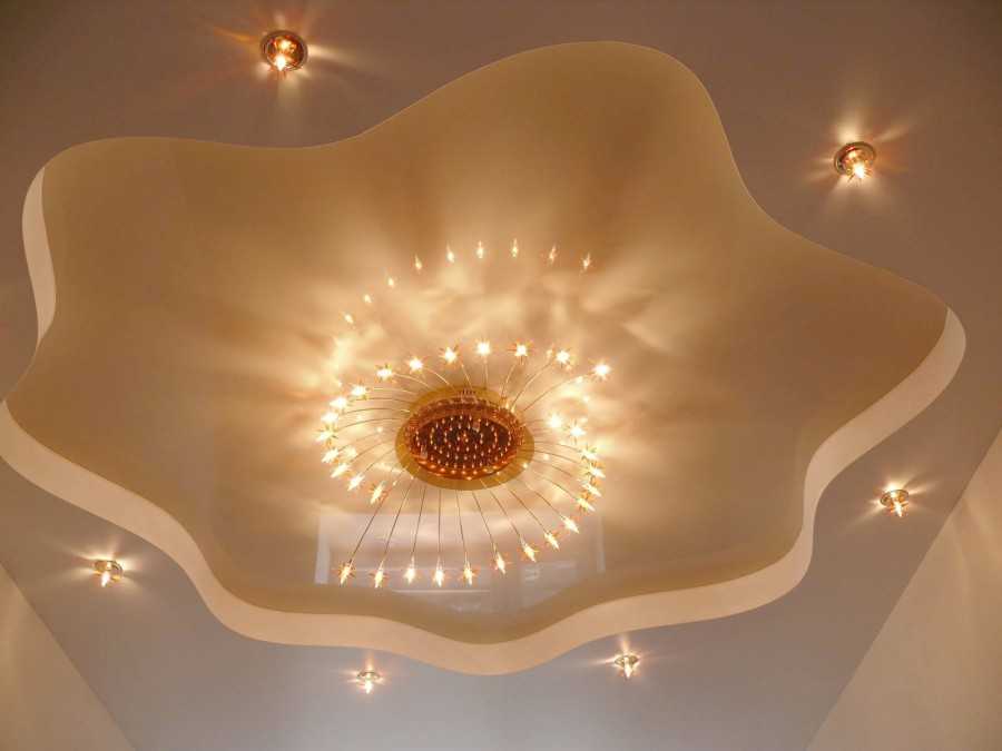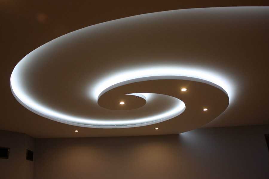 Потолочные из гипсокартона — немного устаревший, но все еще популярный вариант, для акцентирования потолка с помощью различных перепадом форм и ярусов с помощью монтажа коробов из гипсокартона.