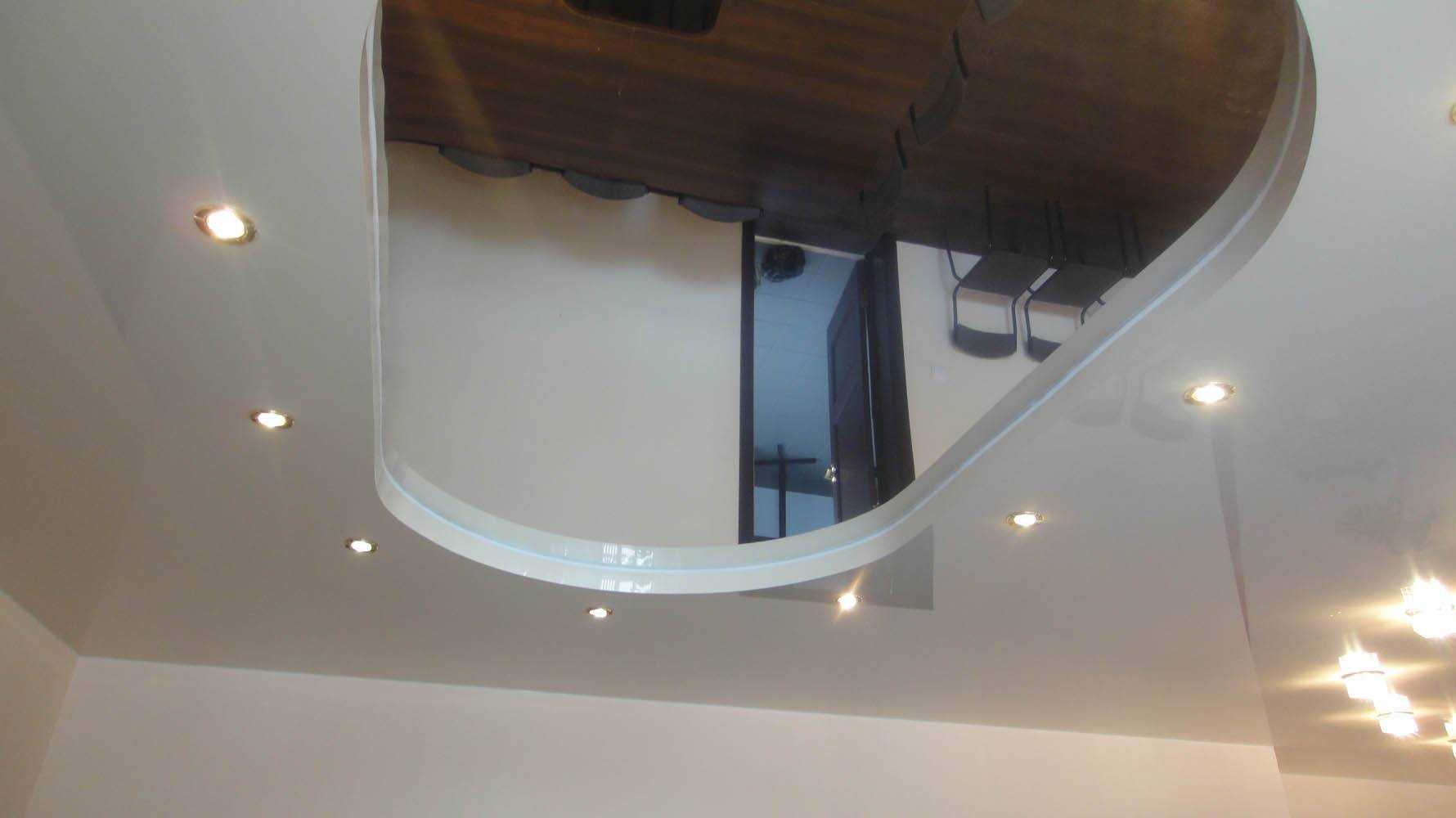 Привлекают внимание своей оригинальностью сочетание двух разных видов подвесных потолков, например, зеркальный с гипсокартонным. Вариантов множество – гипсокартонная окантовка со стеклянным центром или наоборот, возможно фрагментарное сочетание