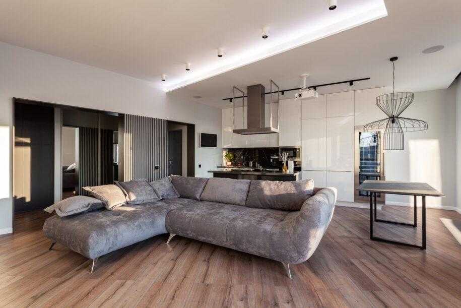 Среди тенденций последних лет можно наблюдать склонность к объединению нескольких помещений в одно для увеличения малогабаритных площадей. Так, например, гостиную совмещают: