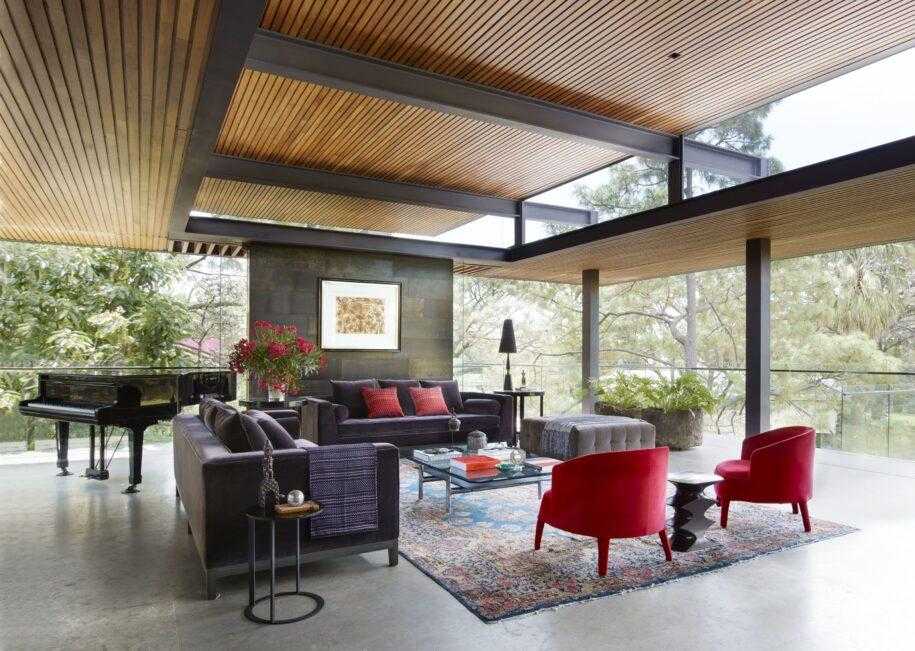 Существует распространенное мнение, будто потолки из ствола дерева неуместны в современном стиле. Однако это всего лишь заблуждение: существуют специальные приемы, позволяющие преодолеть кажущуюся несочетаемость. В формате хай-тек нужно соблюсти два ключевых требования: предметы должны иметь строгую геометрию, но при этом их внешние контуры следует делать не слишком резкими. Если нужно оформить помещение в духе модерна, придется сочетать с древесиной другие материалы, как натуральные, так и синтетические. Единственным непременным условием будет строгая гармония между частями комнаты.