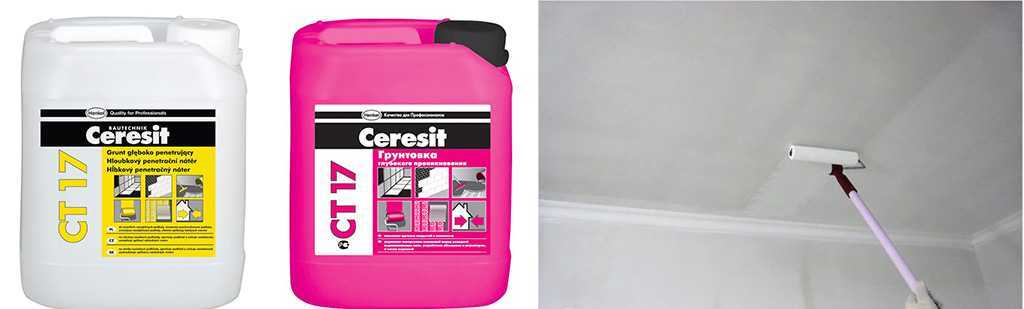 - Если потолок ровный и на нем нет дефектов и трещин, то его можно просто обработать грунтовочным раствором;