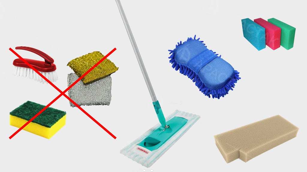 - губку, ветошь, тряпку из микрофибры или мягкую насадку для швабры;