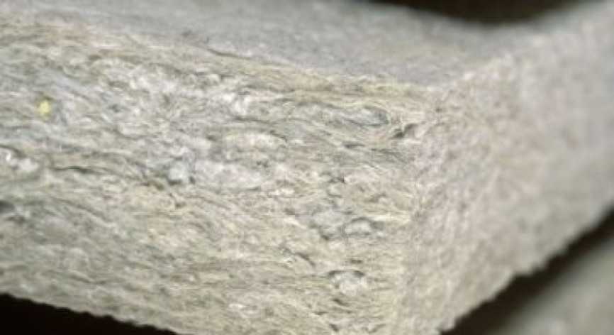 - Шлаковата. Наиболее плотный утеплитель, масса м3 составляет 400 кг. Рабочие характеристики сохраняет при температуре до +250°C, если нагреть до 300°C, начинает плавиться. Эластична, хорошо укладывается на криволинейные поверхности, при соблюдении норм использования прослужит более 50 лет. Нельзя применять внутри жилых помещений и на металлических перекрытиях с повышенной влажностью.