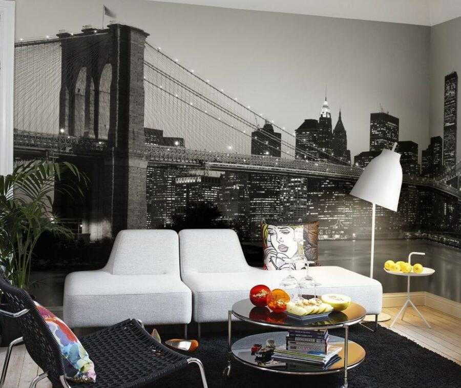Решить вопрос зонирование пространства поможет – дизайн гостиной с фотообоями