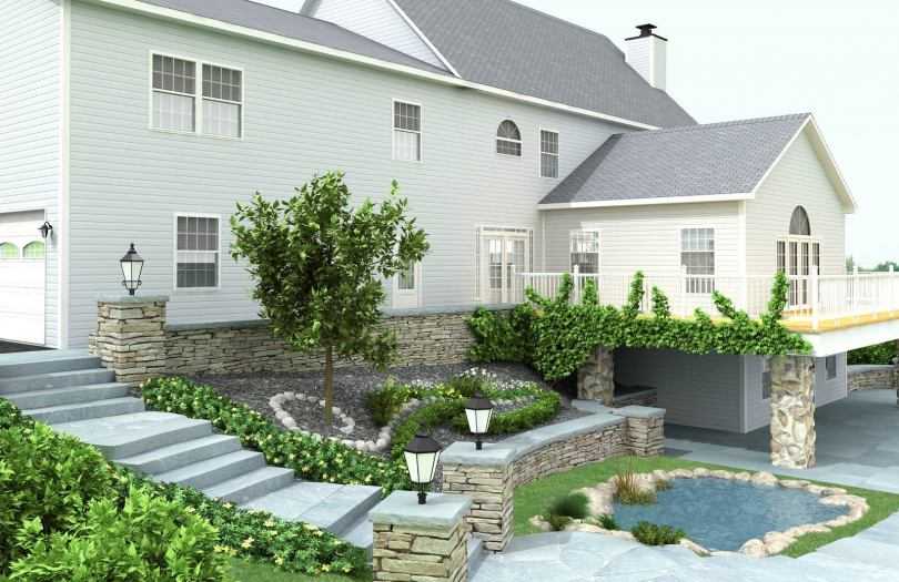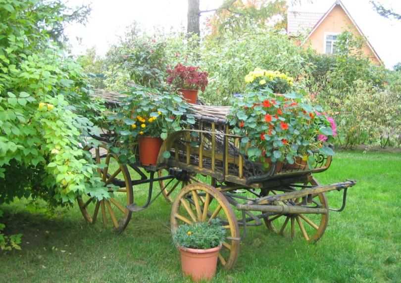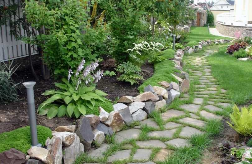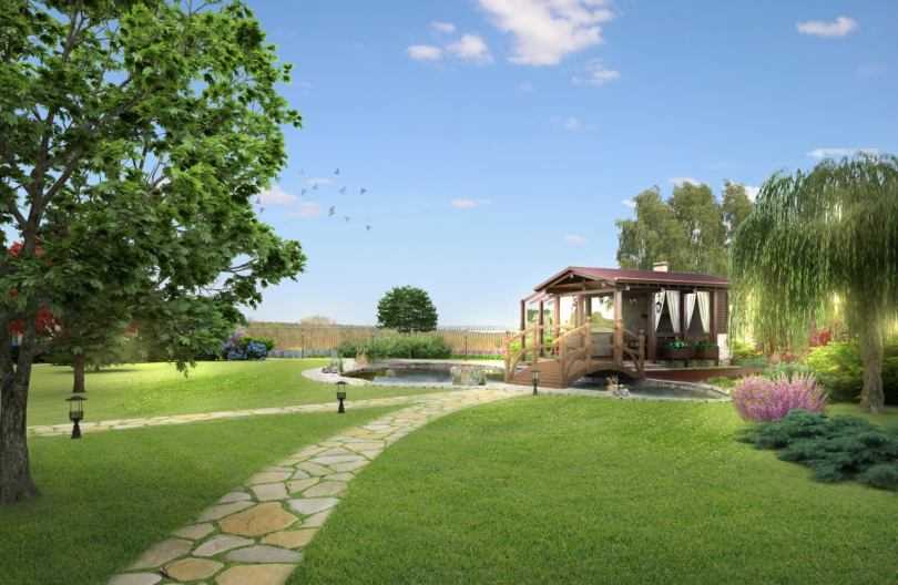 На участках могут также размещаться фонтаны либо искусственные водопады, арки и перголы. Места для отдыха обозначаются павильонами или скамейками (чаще всего – коваными).