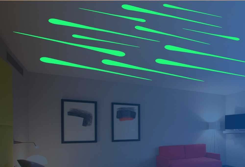Светящиеся наклейки на потолок обладают рядом достоинств, которые выгодно выделяют их среди других вариантов подобных альтернатив: