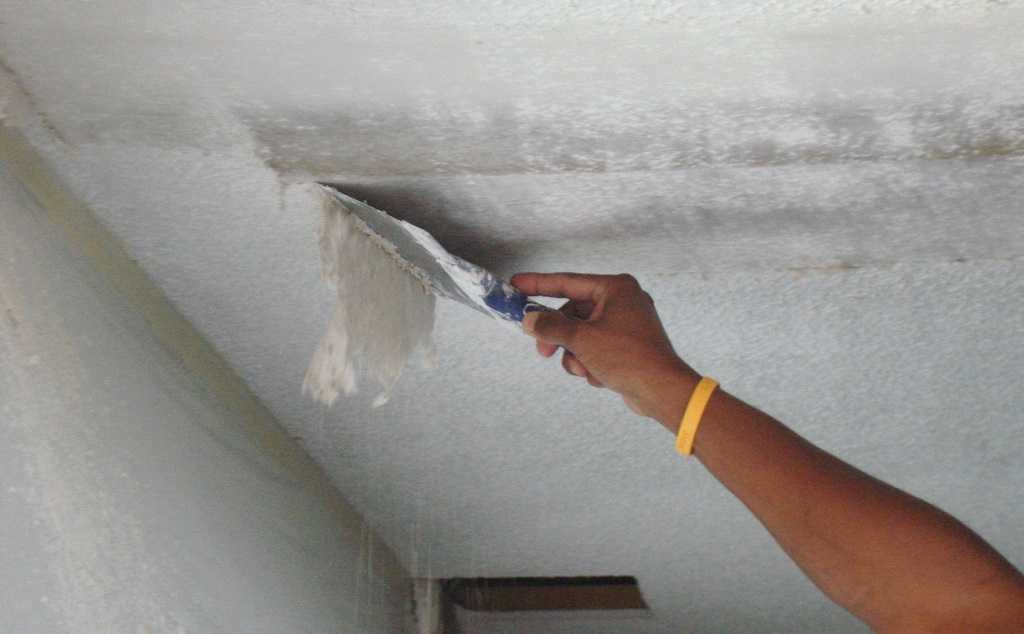 Клейстером смазывают всю поверхность потолка, ждут полного высыхания и снимают слой шпателем.