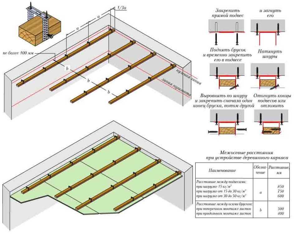 Схема монтажа одноуровневого подвесного потолка