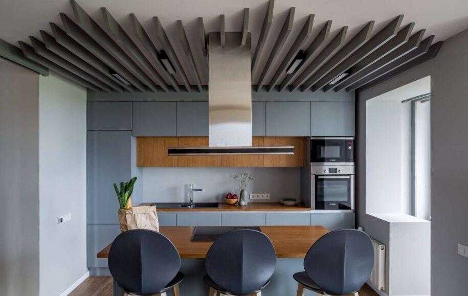 - «съедает» высоту потолка кухни не меньше, чем на 3,2 см;