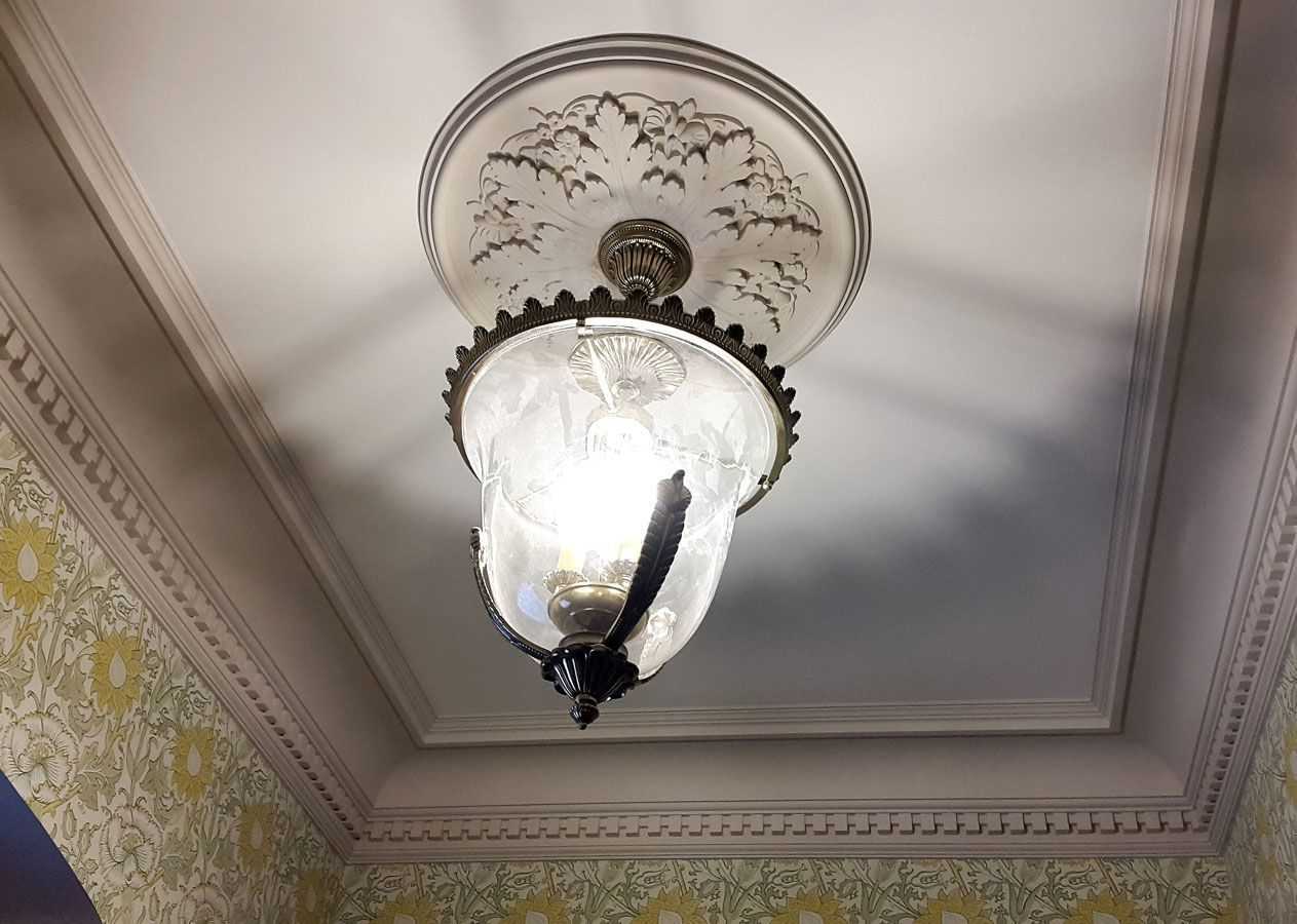 Как быть, если элементы отделки испортились? Полиуретановые розетки легко заменить новыми, с пенополистирольными плитами поступить также. Гораздо сложнее дело обстоит с гипсовыми декорациями. Если не хочется тратить время, можно просто удалить поврежденные части, сохранив при этом симметрию рисунка, или аккуратно снять всю лепнину с потолочной поверхности. Но все же стоит попробовать восстановить гипсовую отделку.
