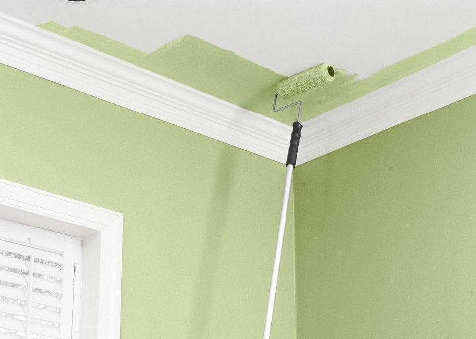 - Простота нанесения. Красить потолки можно валиком, а можно краскопультом. Делается это достаточно быстро (обычно – в 2 слоя).