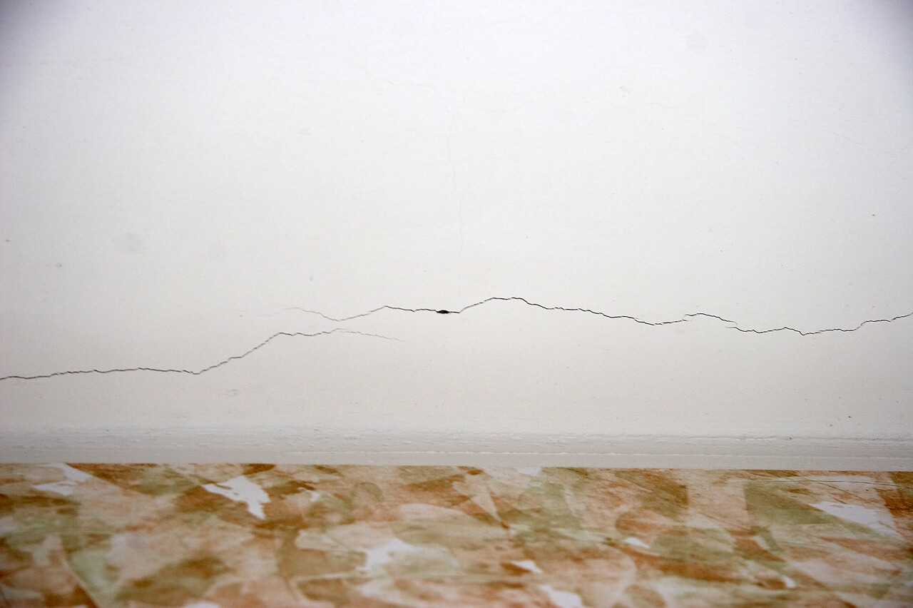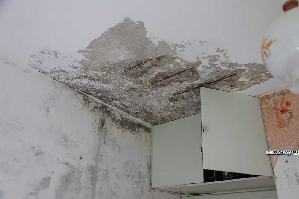 Возьмем худший для нас сценарий: старая штукатурка частично разрушена и поражена грибком; потолок имеет глубокие трещины по швам и перепады высоты.