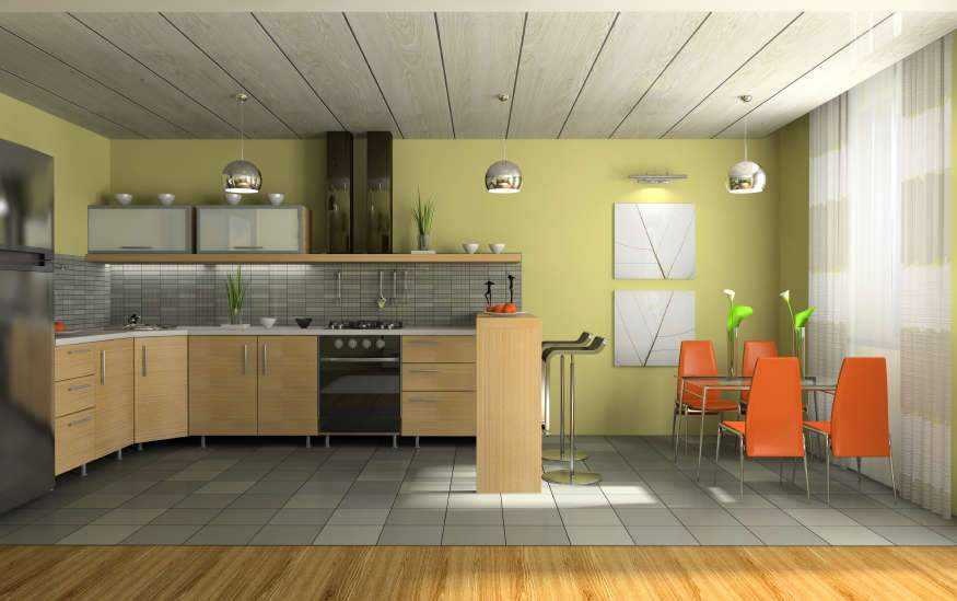 Для облицовки потолка в кухне необходимы материалы, выдерживающие влажный воздух, резкие перепады температур, повышенное парообразование. Поверхность приходится периодически мыть с применением агрессивных составов, чтобы удалить пятна жирной копоти и брызг, образованных при кипении масла, поэтому важна прочность и устойчивость к химикатам. Такими свойствами отличаются: