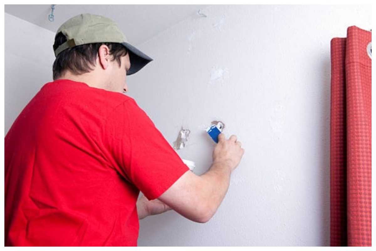 - Сначала снимают старое покрытие. Если прежде на поверхности была побелка, то нужно её смыть или хорошо соскоблить, поскольку известь за счёт высокой паропроницаемости и зернистой структуры обладает очень низкой адгезией. Даже нанесение грунтовки на такой слой ситуацию не исправит, а раствор продержится совсем недолго. Опасность представляют участки с отслаивающейся старой штукатуркой, которые при выравнивании вберут в себя влагу и ещё больше отстанут от основания. Поэтому любые загрязнения, пятна, пыль, биологические структуры, плохие участки с низкой прочностью, дефекты, в том числе выступающие неровности, нужно убрать.