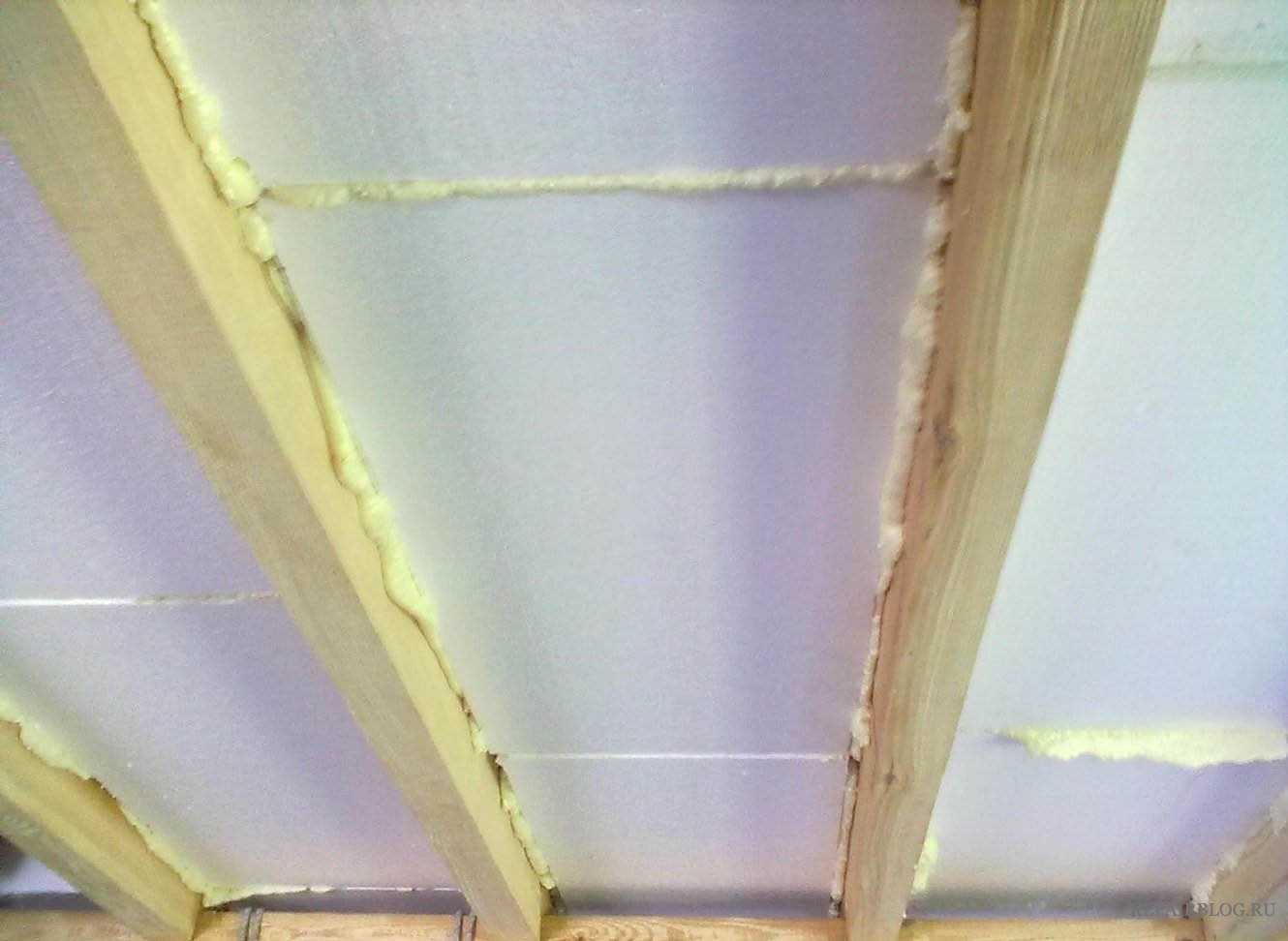 Потолок укладывается только после настила крыши (об утеплении крыши читайте в отдельной статье), иначе высок риск порчи материалов!