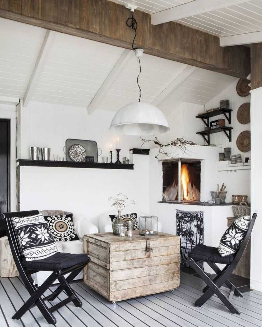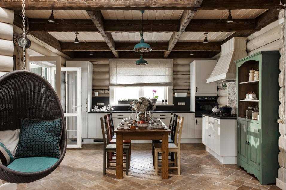 Открытые балки на потолке помогут создать неповторимый стиль деревенского дома, например, одно из направлений кантри.