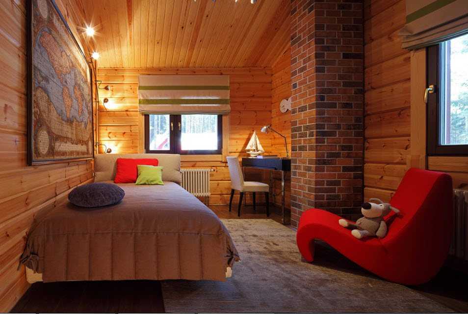 - Привлекательный вид. Материалы, применяемые для оформления потолочной поверхности, должны гармонировать со стенами из натуральной древесины и в результате создавать единый интерьер, делая обстановку в доме еще более уютной и комфортной.