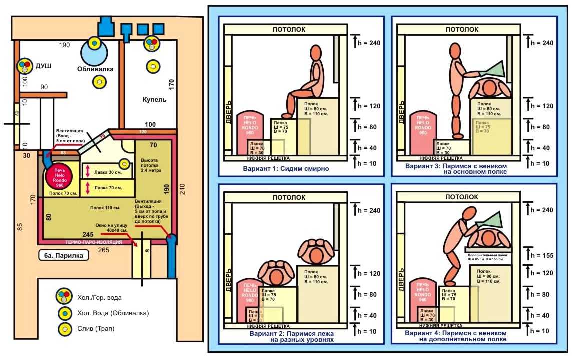 Рассчитываем высоту потолка в парной. Варианты размещения людей в парной