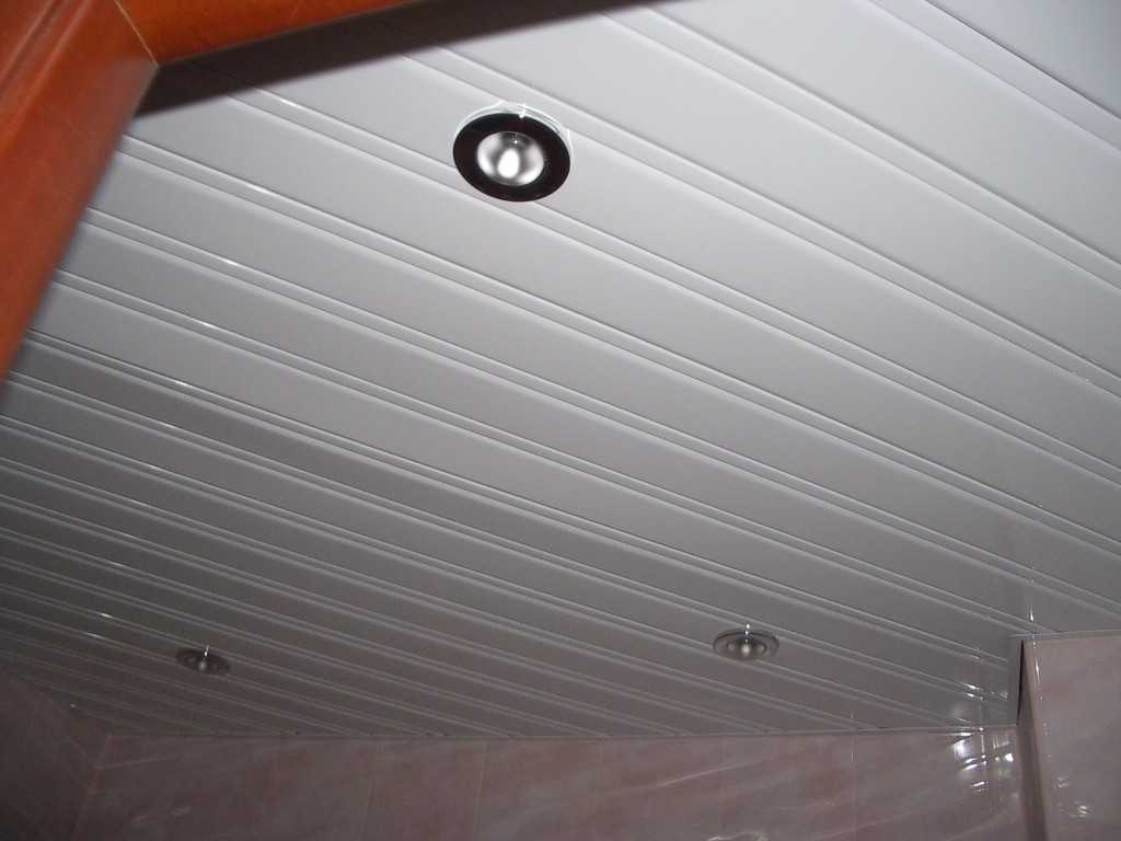 Потолок своими руками можно исполнить в виде пластиковых панелей. В данном случае нет необходимости подготавливать потолок к отделке, долго выравнивать, шпаклевать, штукатурить и грунтовать его. Сам пластик закрепляется с помощью каркаса, требует немного времени на установку. Пластиковые панели — влагостойкие, имеют широкий ассортимент фактур, цветов, однако не является экологичным материалом. Также вы можете оклеить поверхность обоями, при условии, что они будут влагостойкими, моющимися, например, жидкие, виниловые, флизелиновые.