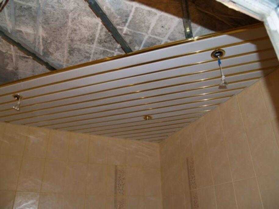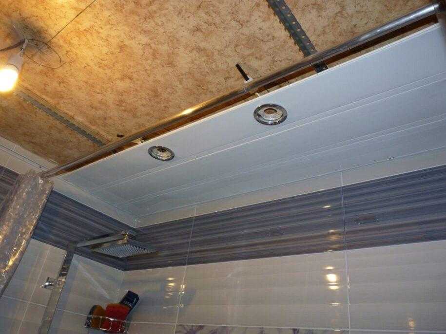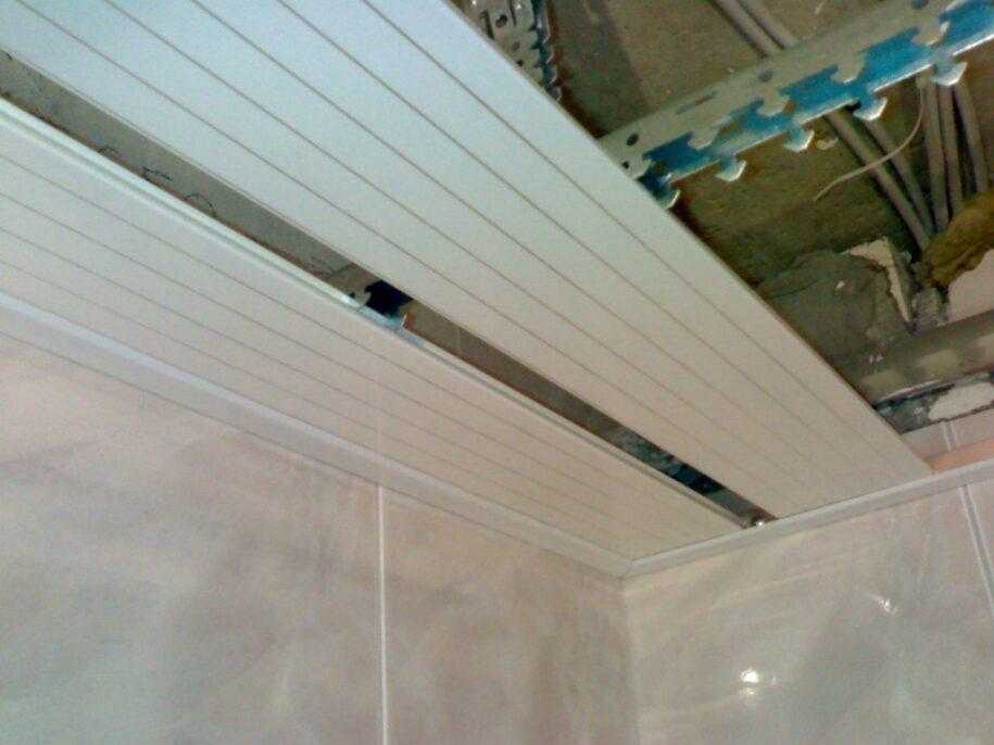 Монтаж панелей ПВХ на потолок ванной комнаты