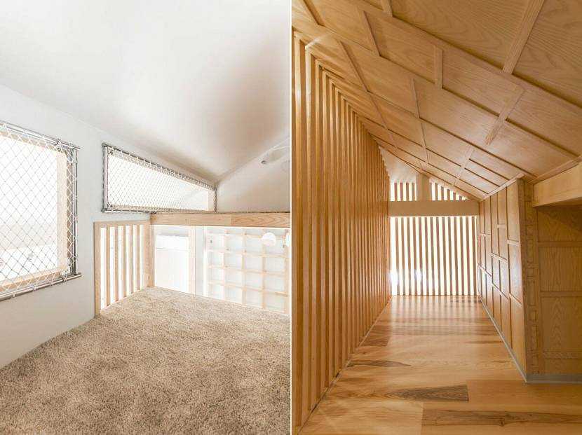 Потолок на мансарде будет смотреться оригинально, если положить рейки под углом, скомбинировать разнонаправленные зоны, создать переливы света и тени.