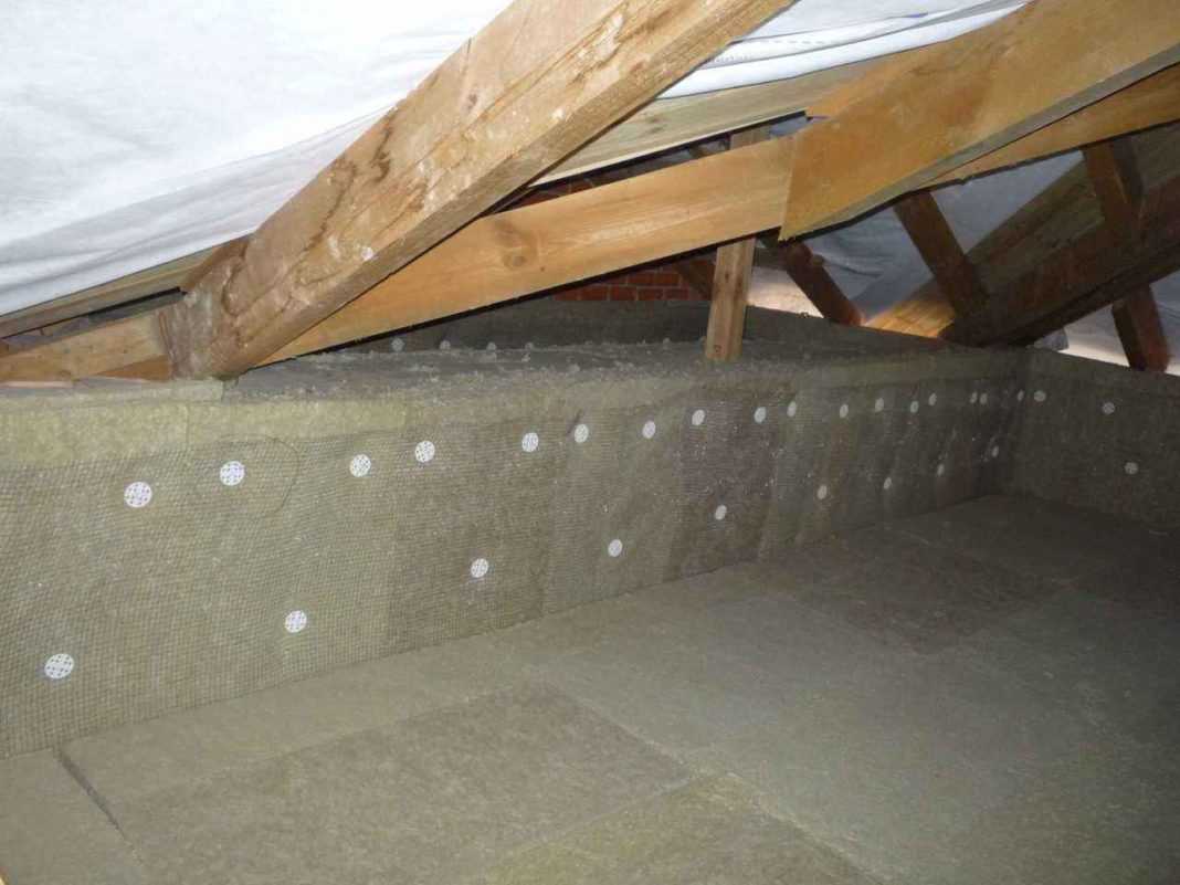 Снаружи утепляется крыша или пол на чердаке. Теплоизоляционные работы чердачного пола можно проводить простым или более сложным способом. При выборе первого способа на пол приклеивают утеплитель, который сверху закрывают фанерой или ДСП.