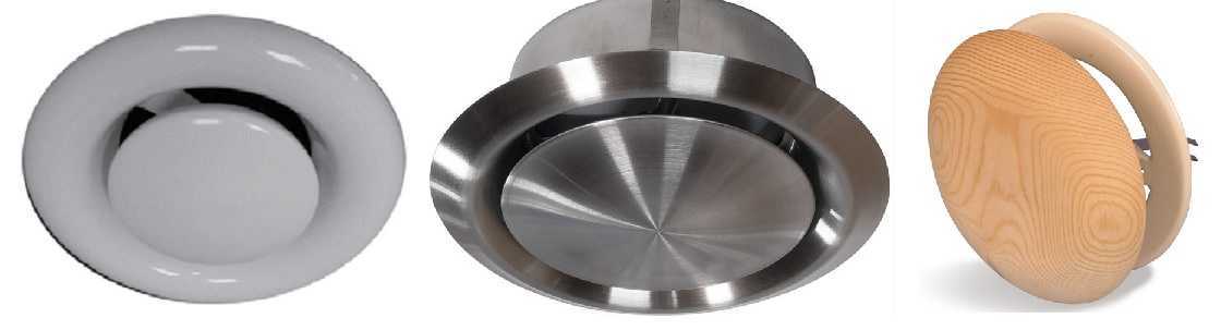 Потолочный диффузор может быть из пластика, металла, с деревянным элементами