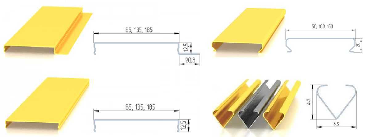 Рейки могут быть разной ширины и формы. Ширина — от 90 мм до 200 мм. Лицевая поверхность планки может быть гладкой (немецкий и русский), скругленной (итальянский). Бывают и треугольные в сечении, но в квартирах они используются редко. Отдельно стоит отметить перфорированные рейки. Они хороши для вентиляции, но вид слишком формален для квартиры или дома.