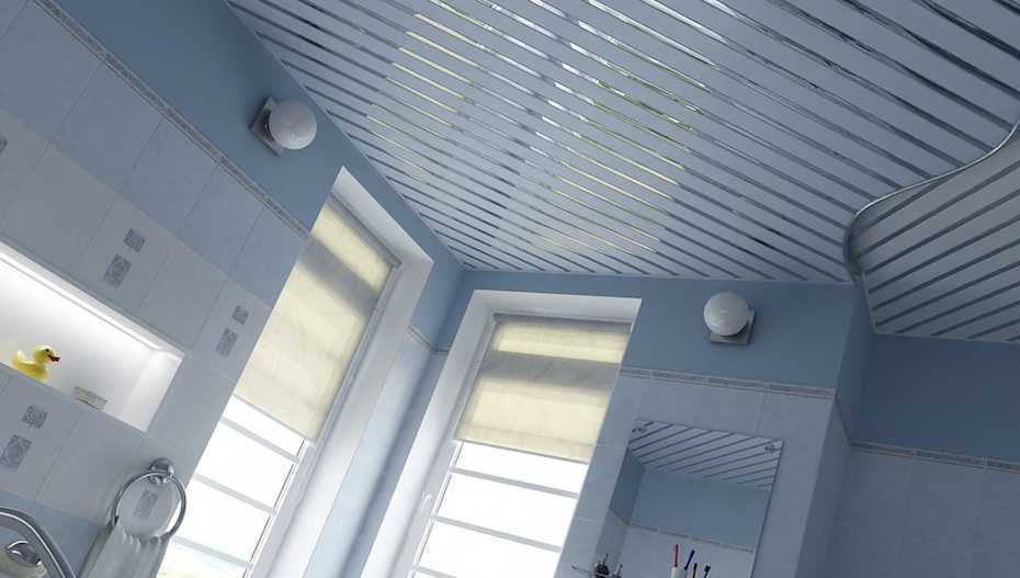 Алюминиевые рейки – самый популярный и практичный вариант отделки потолка в ванной комнате