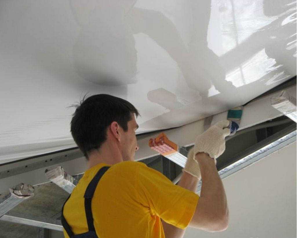 После демонтажа и устранения проблемы придется повторить процедуру установки натяжного потолка своими руками заново.