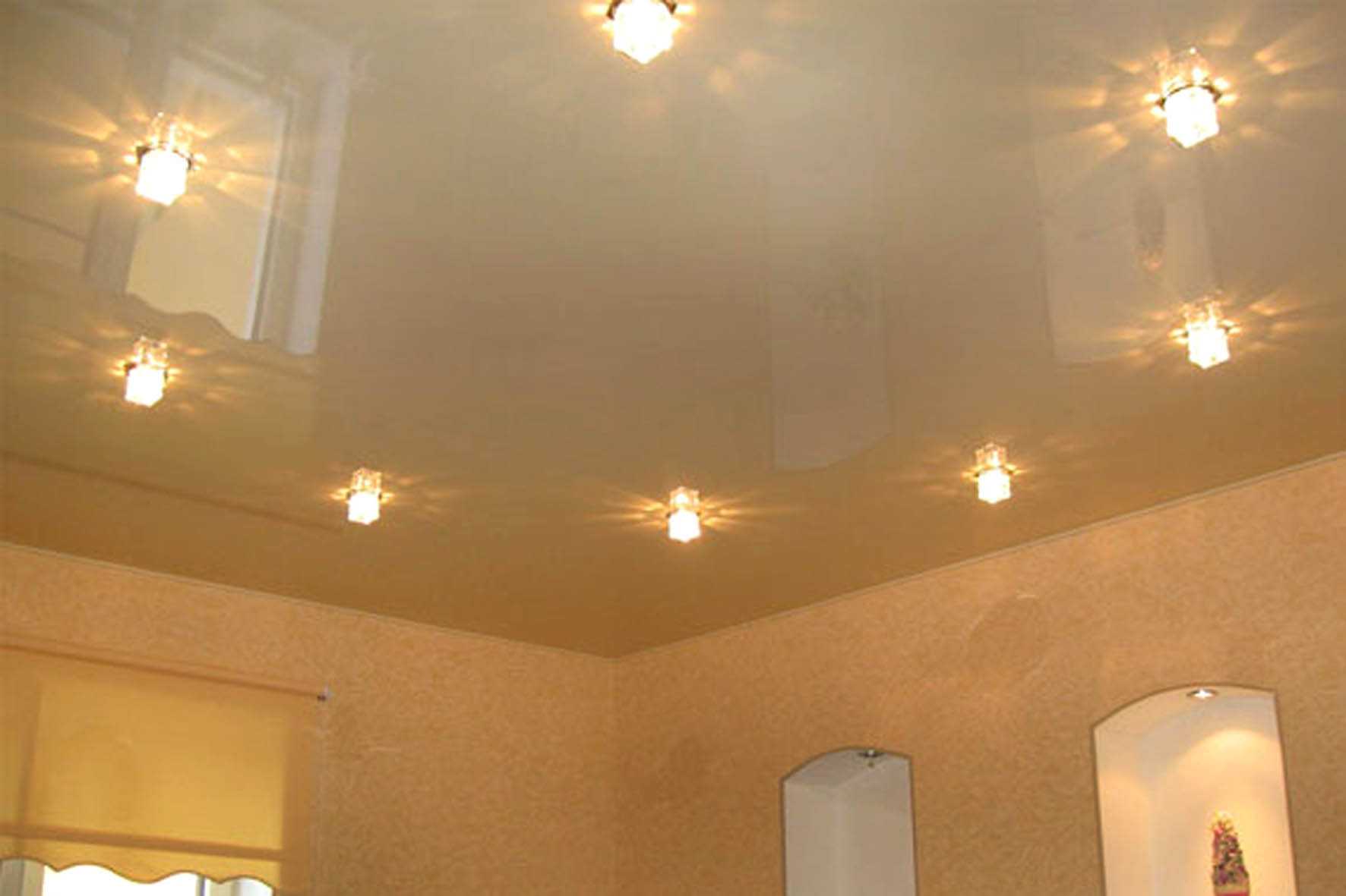 - При установке натяжных потолков существуют определенные требования к источникам освещения. Нельзя использовать слишком яркие и мощные лампы: от постоянного нагрева некоторые типы потолков деформируются и меняют цвет. Мощность обычных ламп должна быть менее 60 Вт, галогенных — менее 25 Вт.
