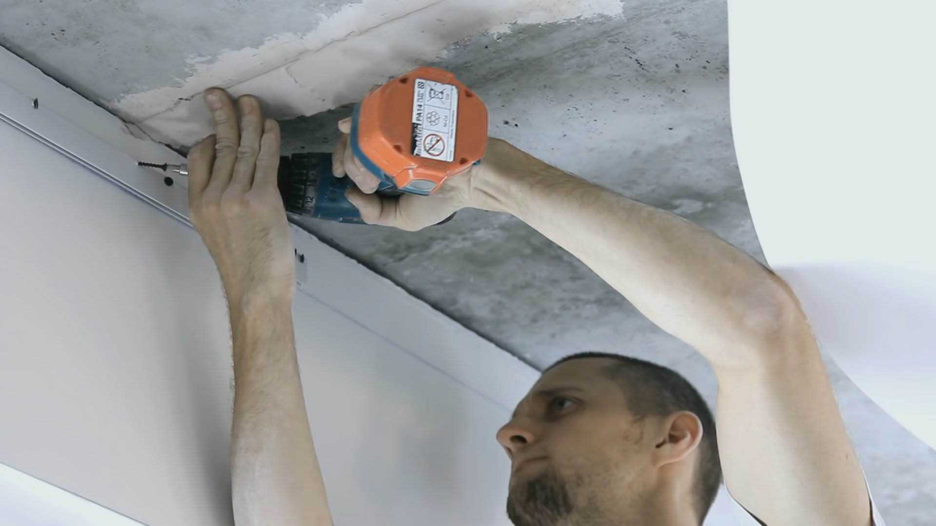 Для закрепления профиля, на котором будет держаться потолок, понадобится перфоратор и шуруповерт.