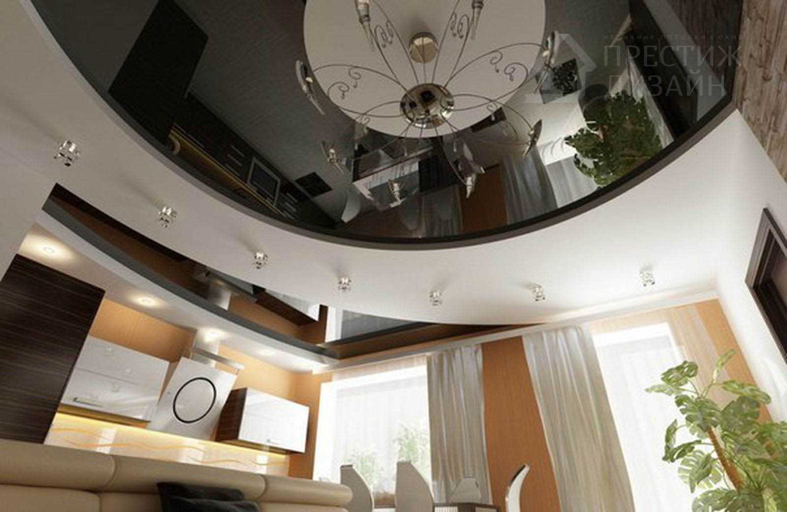 Использование покрытой специальным лаком ПВХ-пленки позволяет добиться красивого зеркального эффекта независимо от цвета используемого полотна и особенностей монтажа в каждом отдельно взятом случае. Вариантность предоставляет в руки владельцам недвижимости отличный инструмент выразительности, позволяющий органично совмещать в одном помещении на общей потолочной поверхности сразу несколько типов материалов.