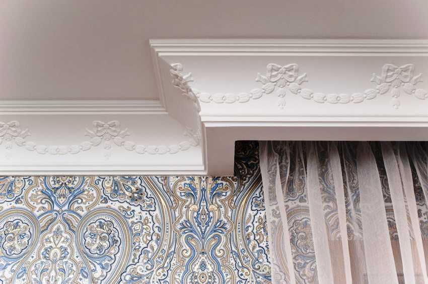- Скрывают незначительные дефекты. Под ними не видны неровные края обоев, неравномерно нанесенная на стенки краска (что практически неизбежно в области стыка стен и потолка).